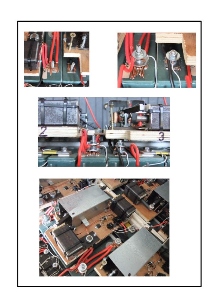 The switch base boards are made of 15 mm plywood with inserts made of 5 mm P1 SRBP bakelite sheet. The inserts are used where required to isolate for high temperatures.