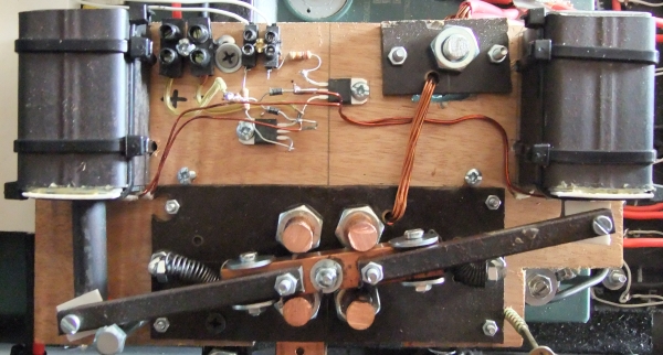 The switch arm is made of 12mm square copper bar and the contacts are made of round copper bar, 10mm in diameter.