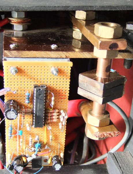 The sensor, together with its resistor and de-coupling capacitor is soldered onto the vero-board and fasened to the bakelite housing with non ferrous self tapper screws. See picture below: