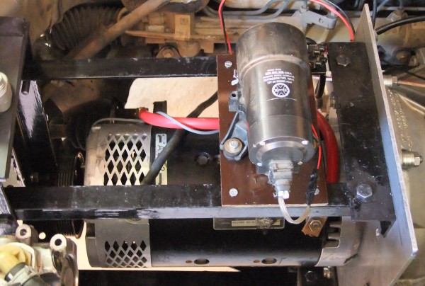 In the original petrol engine compartment, the drive shaft from the gearbox is supported with a bearing which is bolted to the engine with the aid of a bracket . With the engine removed, a cradle needed to be built to provide this support. The cradle also keeps the gearbox in the correct position between the two original rubber engine mountings.