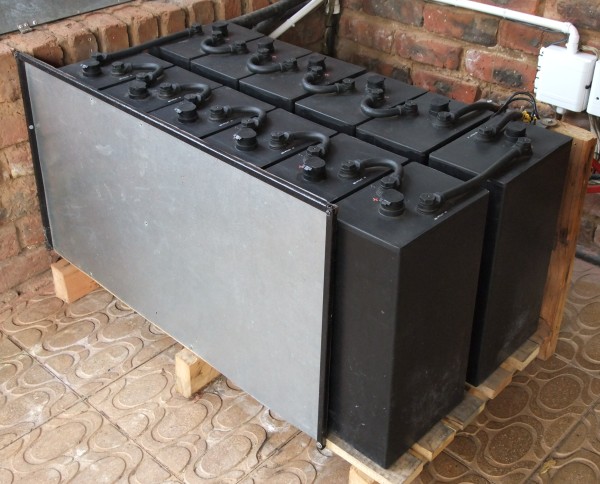The battery bank is made up of 12 x MTL27XF, 819 A/Hr 2V cells from Raylite. The batteries are available from First National Battery (http://www.battery.co.za/).